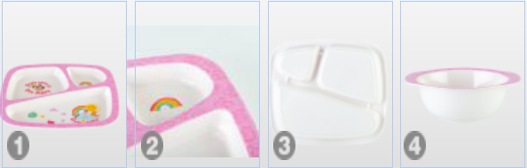 3. 卡通原創(chuàng)的圖案設(shè)計(jì),花色工藝是采用纖維花紙壓制于樹脂層內(nèi),油墨接觸不到食物。